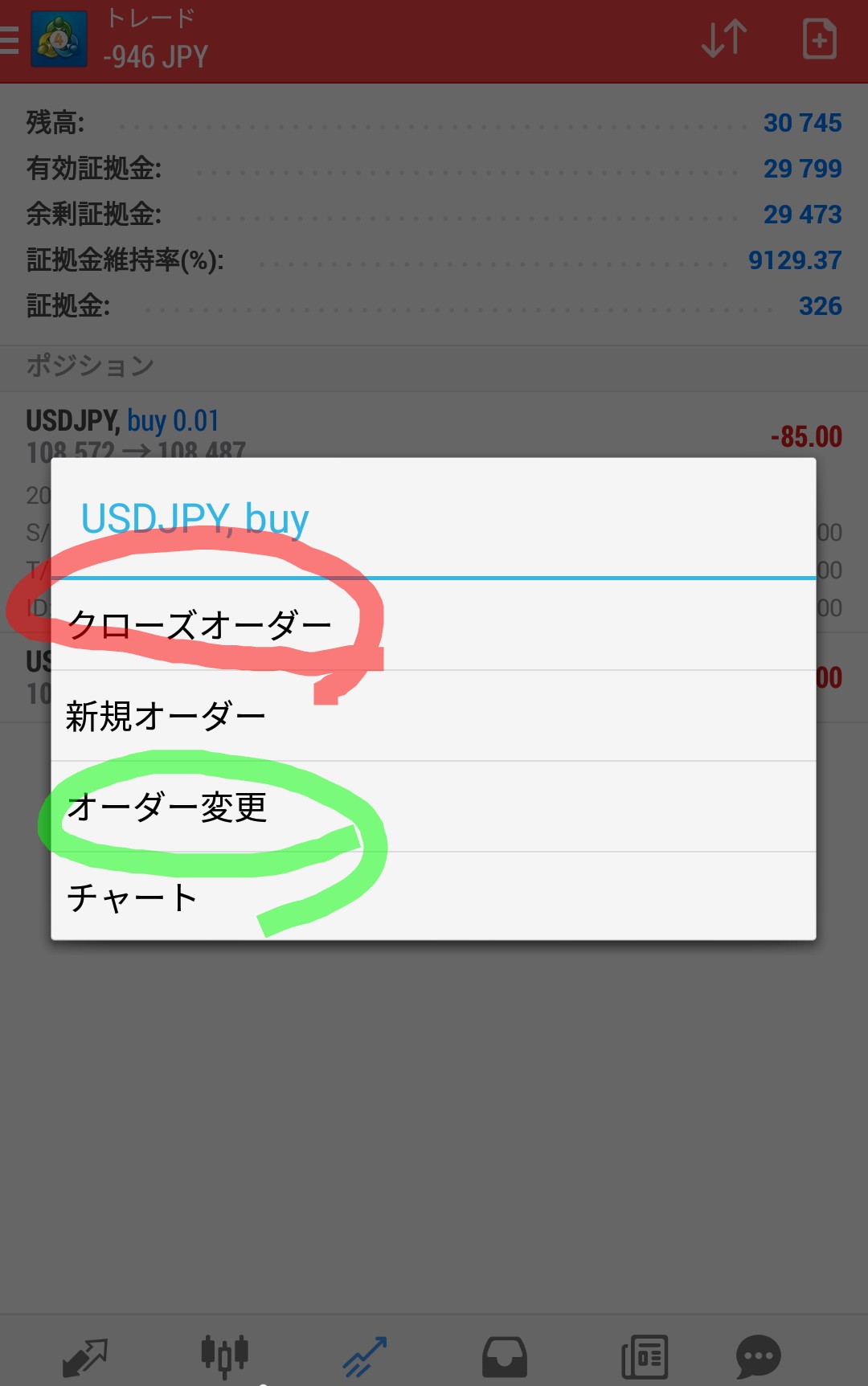 5.持っているポジションを長押しするとこういうメニューが出ます。