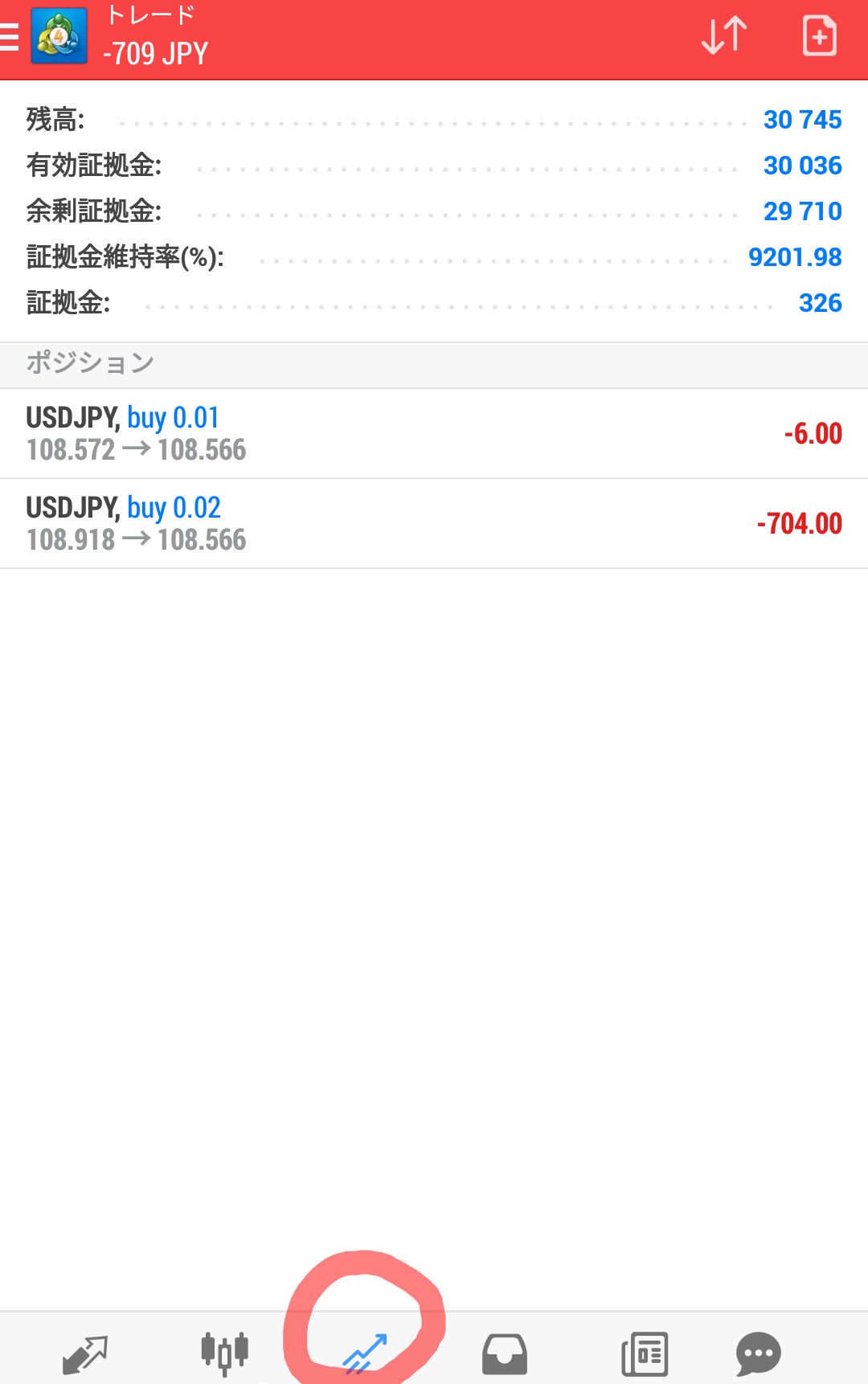 6.先ほど買ったときよりも値段が下がっているせいで、含み損になっています。