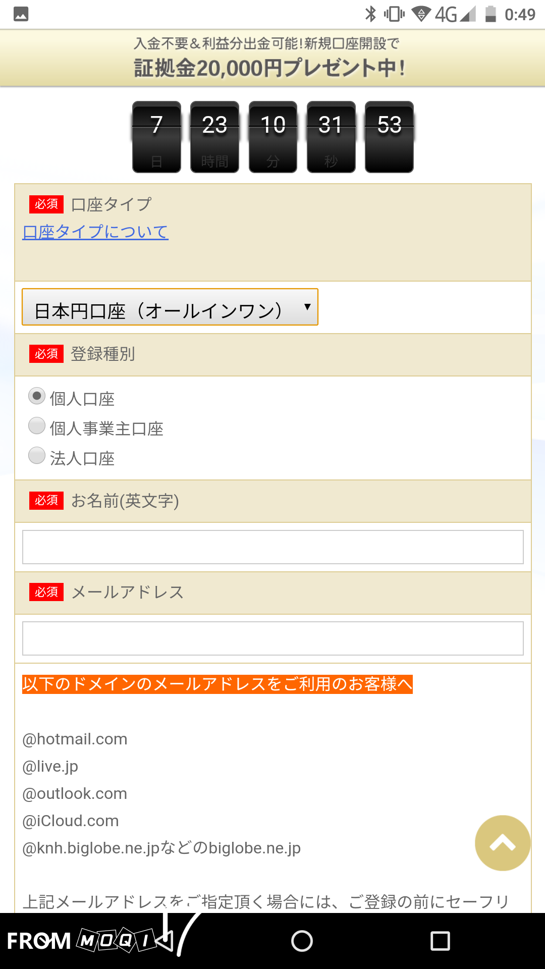 2.この画像上部にある「口座開設はコチラ」をタップ