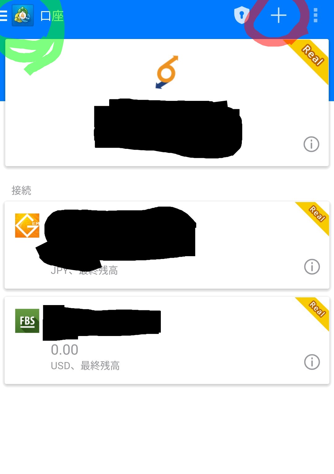 10.起動したらば右上の赤丸の「+」ボタンからGEMで開設された口座の登録をします。