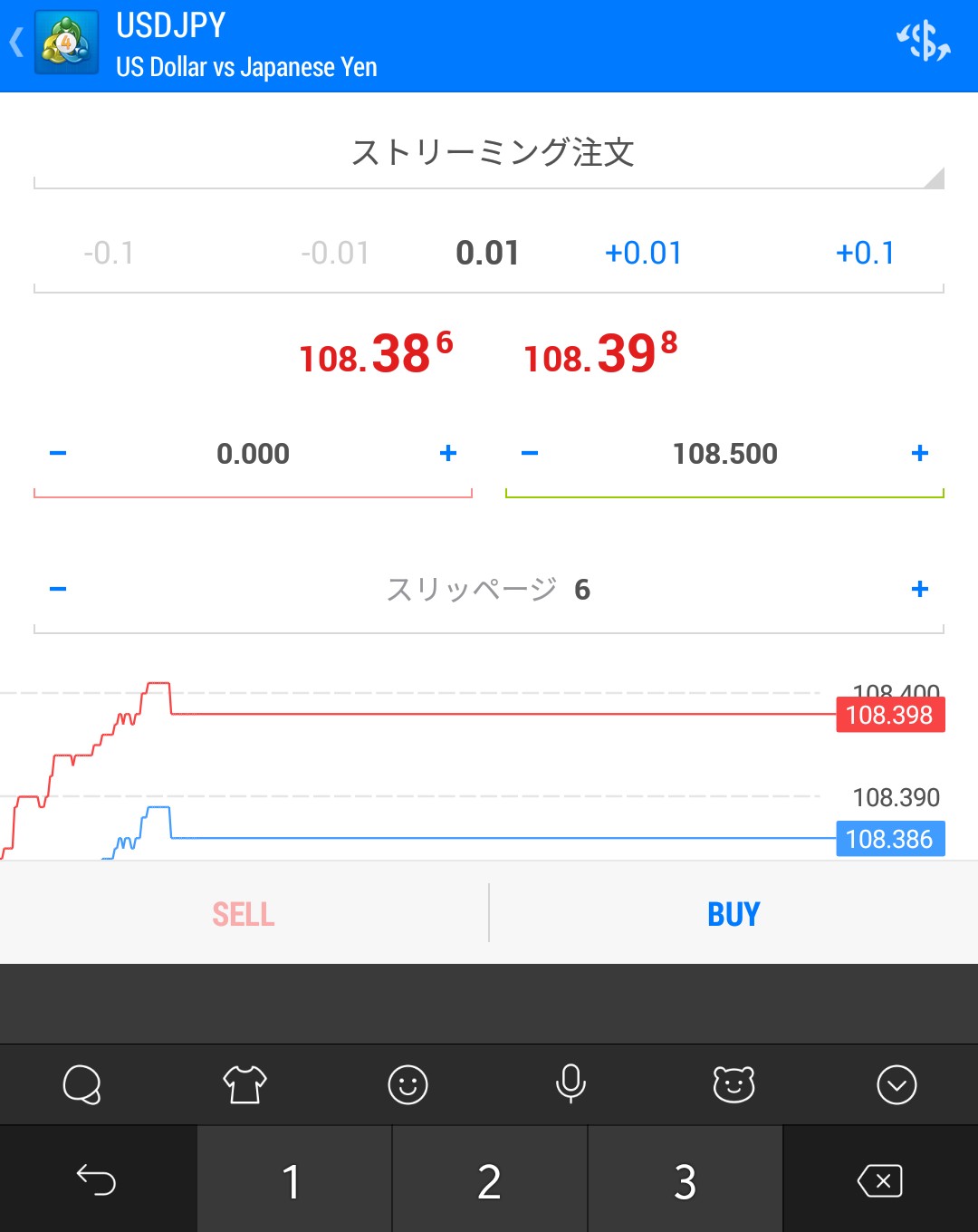 上の±0.01とか0.1を押すことでLOT数を指定します。